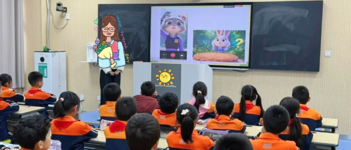 一二年级的孩子,第一次接触AI时,课程教他们的不是“用什么工具”,而是“如何清晰表达”。通过AI萌库(语音交互智能机器人),学生学会用完整句子提问: